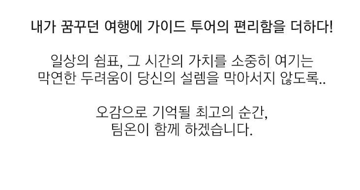 홍콩과 캐나다 포함 10년째 해외 생활 중입니다. 투어 가이드로 여행같은 일상을 살아가며 오래 지나지 않아 결국 남는것은 현장에서 만난 좋은 사람들임을 깨닫게 되었습니다. 저도 여러분들의 좋은 사람이 되어드릴게요! 즐겁고 편안한 여행 함께해요!